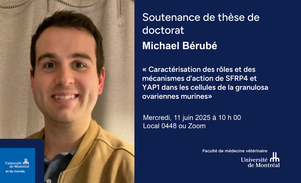 Lieu : Local 0448, 1500 Avenue des Vétérinaires