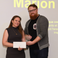Photo : Marion Desmarchelier et Jordyn Hewer, membre du conseil d'administration de l'ACMV. Crédit photo : Christophe Dubé. L'Association canadienne des médecins vétérinaires a remis une plaque commémorative à Marion Desmarchelier, professeure agrégée au Département de sciences cliniques. Cette distinction est attribuée chaque année par les étudiantes et étudiants de 3e année au doctorat de 1er cycle en médecine vétérinaire à une professeure ou un professeur dont l'enseignement se distingue par son attitude inspirante, engageante et ses compétences pédagogiques.
