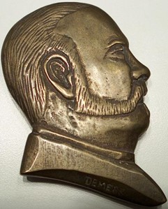 Reproduction en bronze du profil du Dr Victor-Théodule Daubigny, montée sur une plaque de bois, avec une mention personnalisée du récipiendaire.