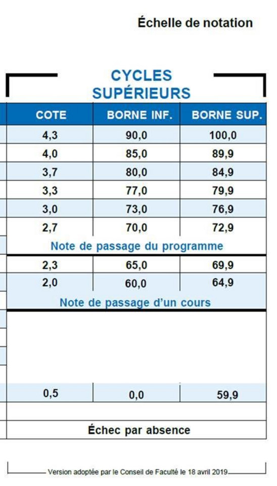 Le règlement de l'Université souligne non seulement l'importance de l'acquisition des connaissances, mais précise aussi les exigences relatives aux attitudes ou habiletés à développer.