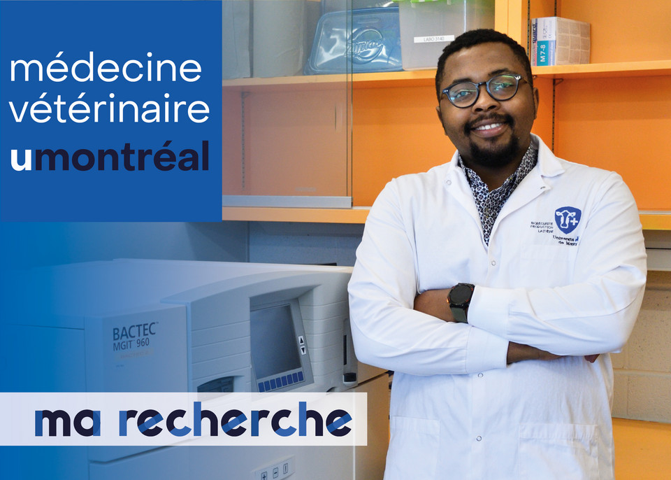 | J’estime la prévalence et évalue les stratégies de dépistage de Mycobacterium avium subsp. paratuberculosis dans les troupeaux laitiers canadiens | William Lelorel Nankam Nguekap, étudiant au Ph.D. sous la supervision du Dr. Juan Carlos Arango Sabogal. |