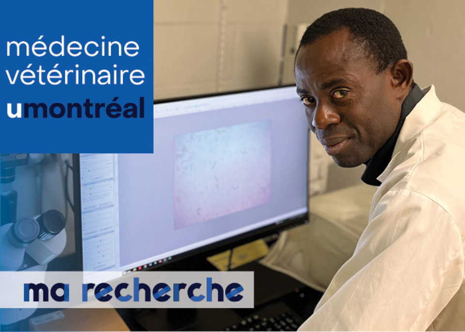 | Je cherche à déterminer si le nématode Caenorhabditis elegans (C. elegans) pourrait être utilisé pour des essais pharmacologiques comme modèle complémentaire aux modèles animaux classiques | Bruno Nkambeu, étudiant au Ph. D. en sciences vétérinaires sous la supervision du Dr Francis Beaudry |